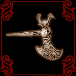 Gold axe shines. Blood stains.